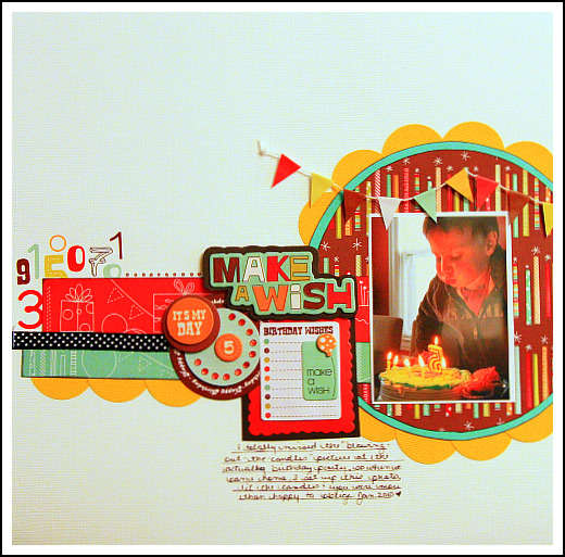 An assignment for Scrap Yourself. I just loved ALL of it here-the clouds, die cut paper,