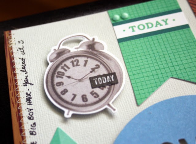 The letters in the kit were gettiing lost in all the prettiness here, so I added some of the woodgrain washi tape to them, trimmed and then lightly sanded the edge for a customized alpha. These stand out against the pattern papers MUCH better.
